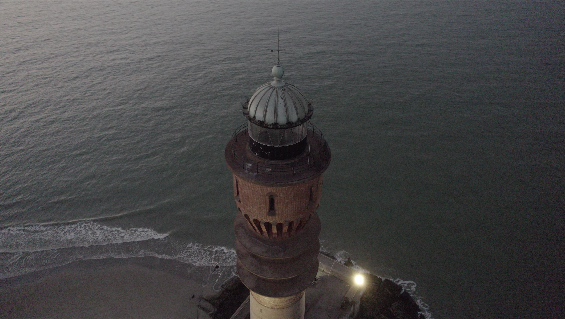 Grâce à un lent travelling de la base jusqu’au sommet, le feu de Saint-Pol-sur-mer montre une résistance face aux vagues et aux tempêtes.