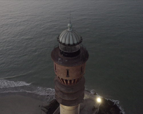 Grâce à un lent travelling de la base jusqu’au sommet, le feu de Saint-Pol-sur-mer montre une résistance face aux vagues et aux tempêtes.