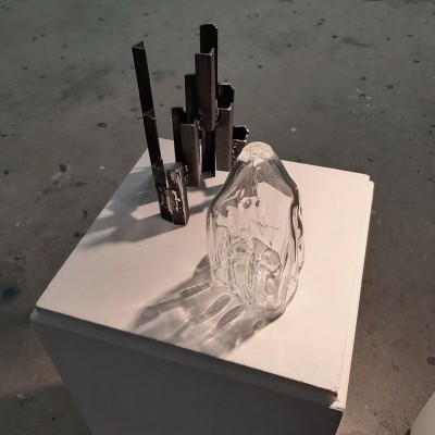 En 2 ou 3D, des perspectives se dessinent entre vues axonométriques, compositions matricielles et profils de modénatures ou d’éléments architectoniques – parfois très bruts ou dans un traitement des surfaces qui confère une certaine picturalité aux volumes. Plusieurs œuvres témoignent d’une fascination singulière pour des architectures, patrimoniales ou quelconques, observées de façon systématique ou saisies suivant les modalités d’une forme d’errance urbaine et périurbaine. Pour leurs auteurs, il s’agit de se souvenir, garder trace d’un éclat, de ce que l’on voit derrière les vitres et les façades, des ruines, de l’éclatement de formes dans l’espace. D’autres pièces affirment le rapport entre architecture et dynamique en s’appuyant sur une recherche d’équilibre, stable comme instable, à petite ou grande échelle. Et certaines enjoignent à prendre la mesure d’un espace, d’une épaisseur (une cloison, une mouluration) ou d’un angle, que ce soit à l’aide d’instruments spécifiques, réels ou redessinés, ou plus directement à l’aune de son propre corps. Parcourant la galerie au rythme de son pas parmi celui des autres, chacun perçoit, selon ses intimes sensations, différentes acceptions des notions d’élancement, d’espacement, d’écart, d’entre-deux ou d’énigme, qui sont pour partie à l’origine du travail des artistes ici rassemblés.